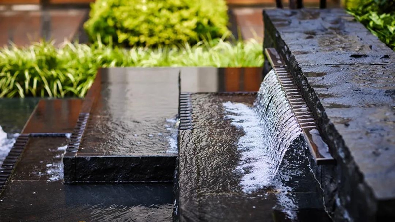 園區中央以水系為主,在游園動線上做到“以水相迎,依石尋道”。通過景觀提升的需求調研發現,業主們希望此處的景觀營造更貼近自然和生活情趣,為達到業主理想的效果,我們首先運用多重植物的巧妙搭配,讓自然景觀起到了引導作用,并以植物柔化石材本體的生硬,營造出了氣息濃郁的江南勝景,讓正弘瓴筑業主贊不絕口!