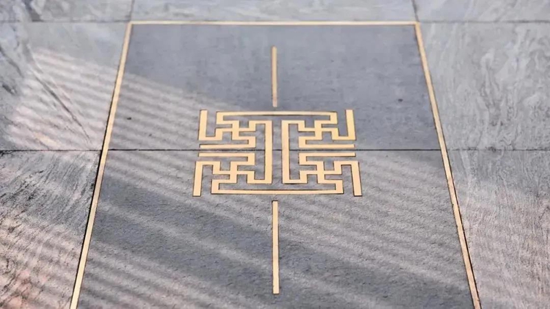 軒廊在營造上遵循古法,廊頂圓洞和地面方形的正弘瓴印鑒LOGO,讓建筑詮釋出了天圓地方的學術理念。廊架頂部鋁板配以地面純黃銅,讓自然天光更為斑斕炫目。正弘瓴筑的十二時辰透過圓洞照射出流動的光影效果,為業主營造出不同的空間體驗。