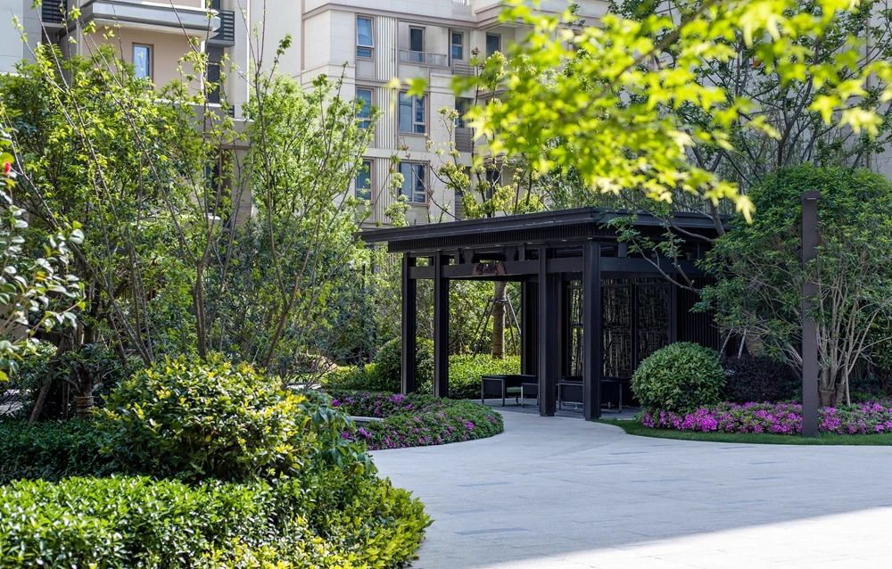 “康體花園、芳香花園、親子花園、流水花園、閱讀花園”,本案的五大交融花園呈現出四時變化、全天候早晚各有不同的動態景觀,因此,紫云賦做到了將光影入畫,借光線變化形成豐富的景觀。