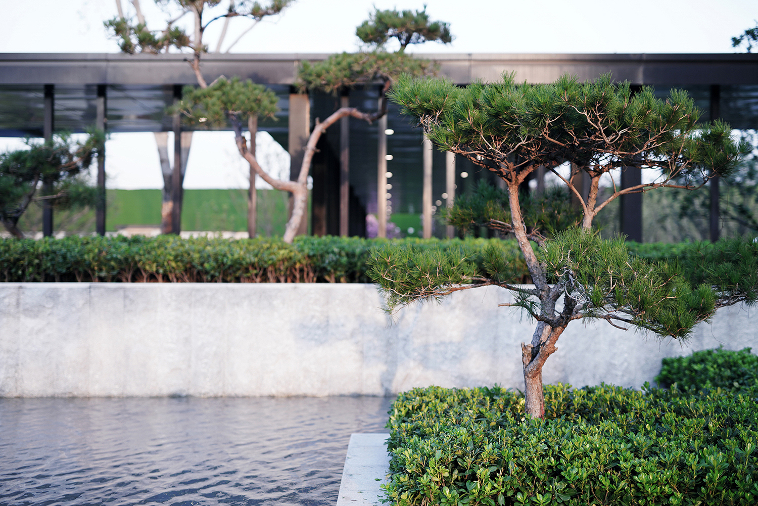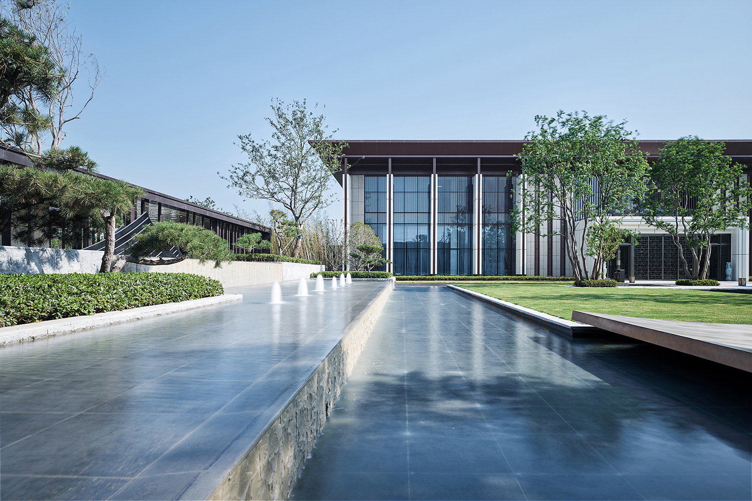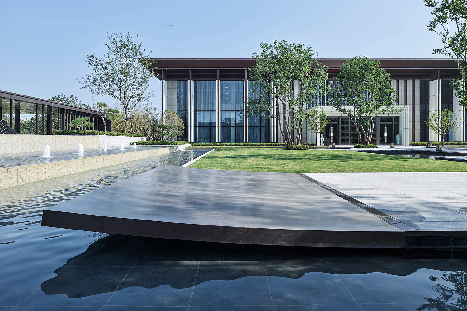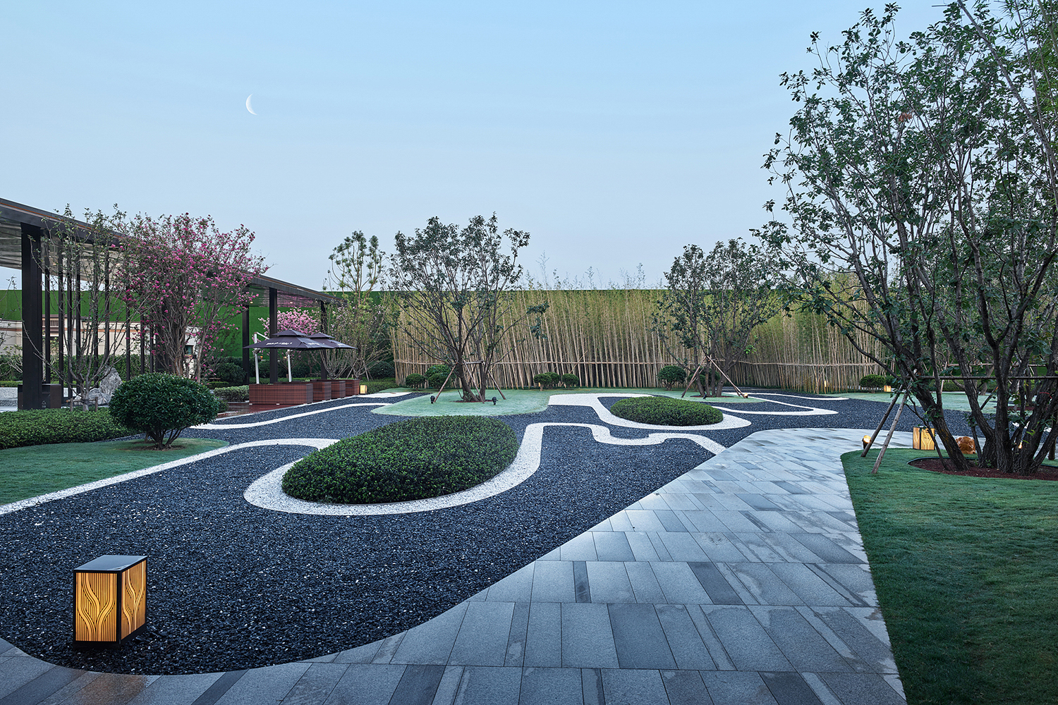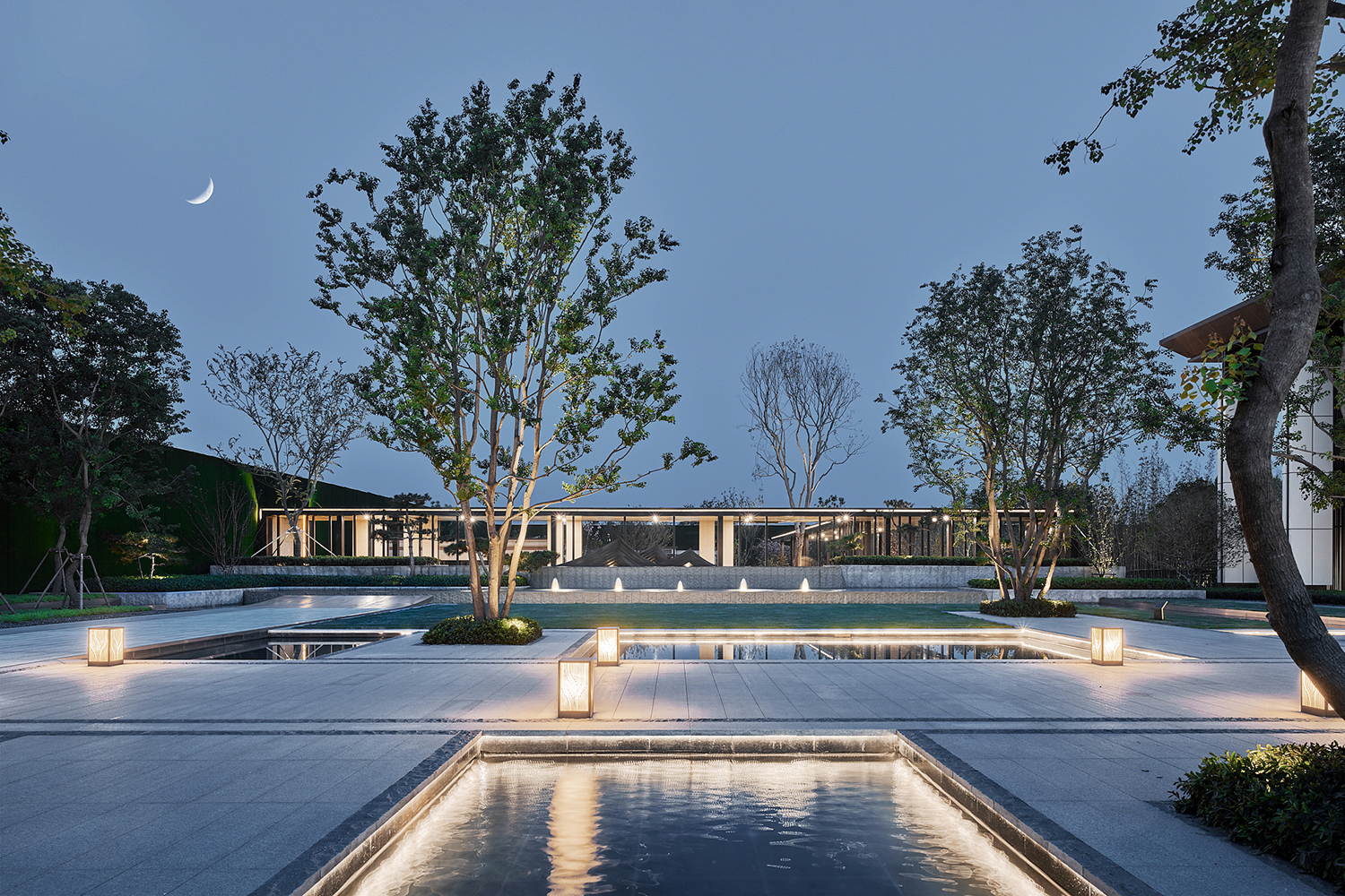 坤達·江山筑,樹影清暉,云靄繚繞;以疏朗飄渺的姿態,追尋中式園林中的逸興遄飛和山水之意。