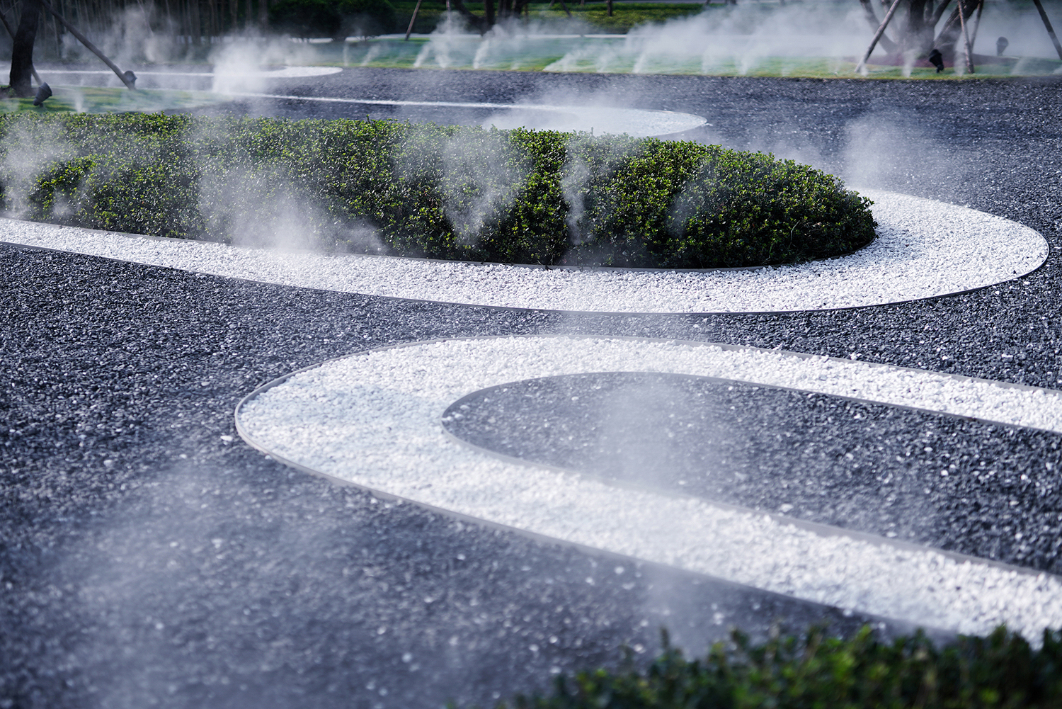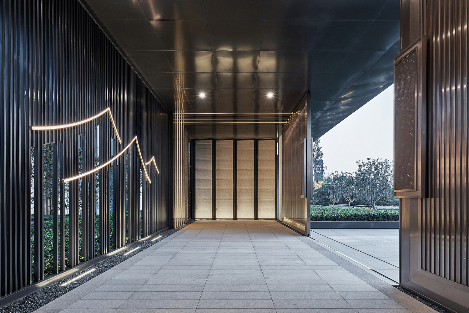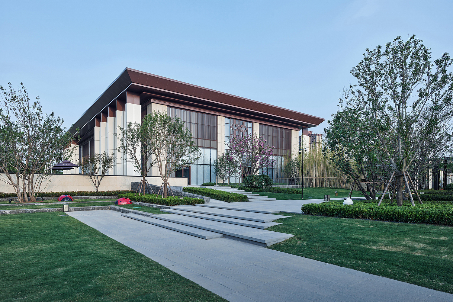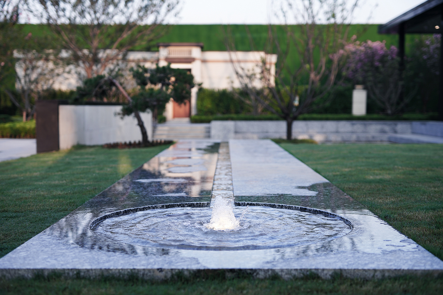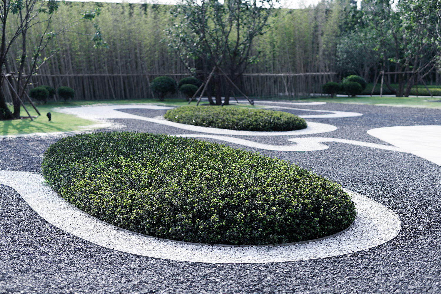 坤達·江山筑,樹影清暉,云靄繚繞;以疏朗飄渺的姿態,追尋中式園林中的逸興遄飛和山水之意。