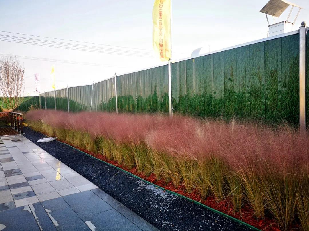 我們本次在軟景施工中也展現(xiàn)了優(yōu)秀的設(shè)計施工能力及水平。本次參賽作品中,以花境島嶼形成“孤島”意向,以黑色卵石鋪設(shè)形成“河流”“灘涂”意向。在園路主要景觀視線及節(jié)點處,以紅葉李、雞爪槭、叢生五角楓做主景樹,結(jié)合大葉黃楊球、金葉女貞球、小檗球進行組團造景,于長條形場地中種植粉黛亂子草營造近年來國內(nèi)外興起的觀賞草景觀,使整體軟景景觀質(zhì)感由花境的精致轉(zhuǎn)向觀賞草的野趣純粹,再到花境的精致。以軟景呼應高品質(zhì)的硬景施工,完成整體的樣板段施工建設(shè)。