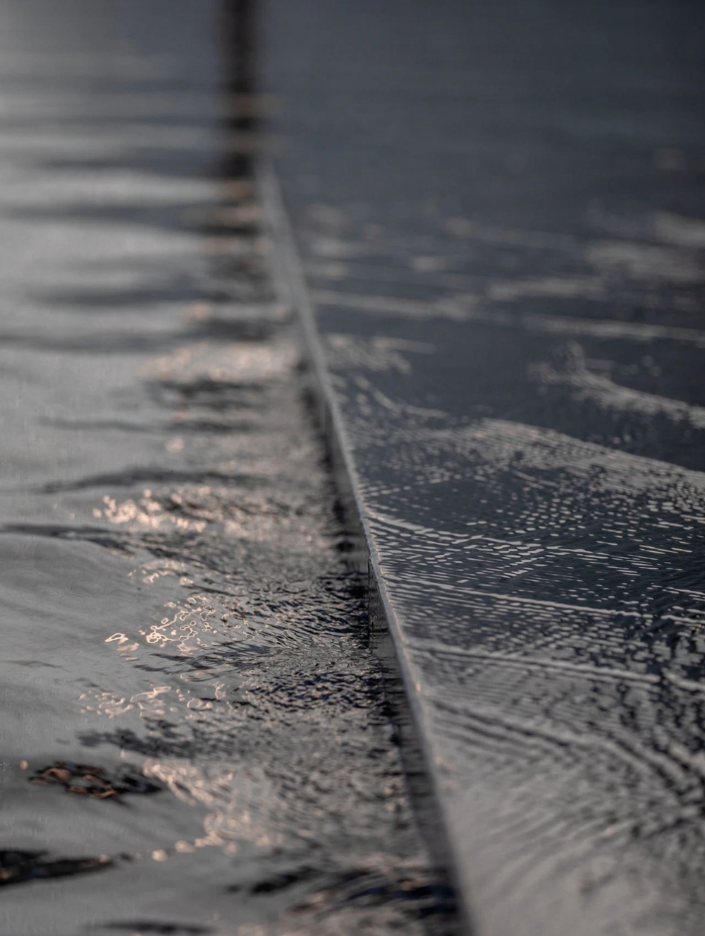 起翹水景的效果圖簡潔唯美,但真正的營造過程卻充滿挑戰。為達到開發商所預期效果,我們在施工前充分做到溝通探討,以確定水景結構的每步造型工序,并針對水槽出水效果及花管開孔位置進行仔細推敲。最終在我們的精雕細琢下,歷經水槽弧度和水景異性石材精簡優化,實現了從效果圖到實景圖的極致實現。